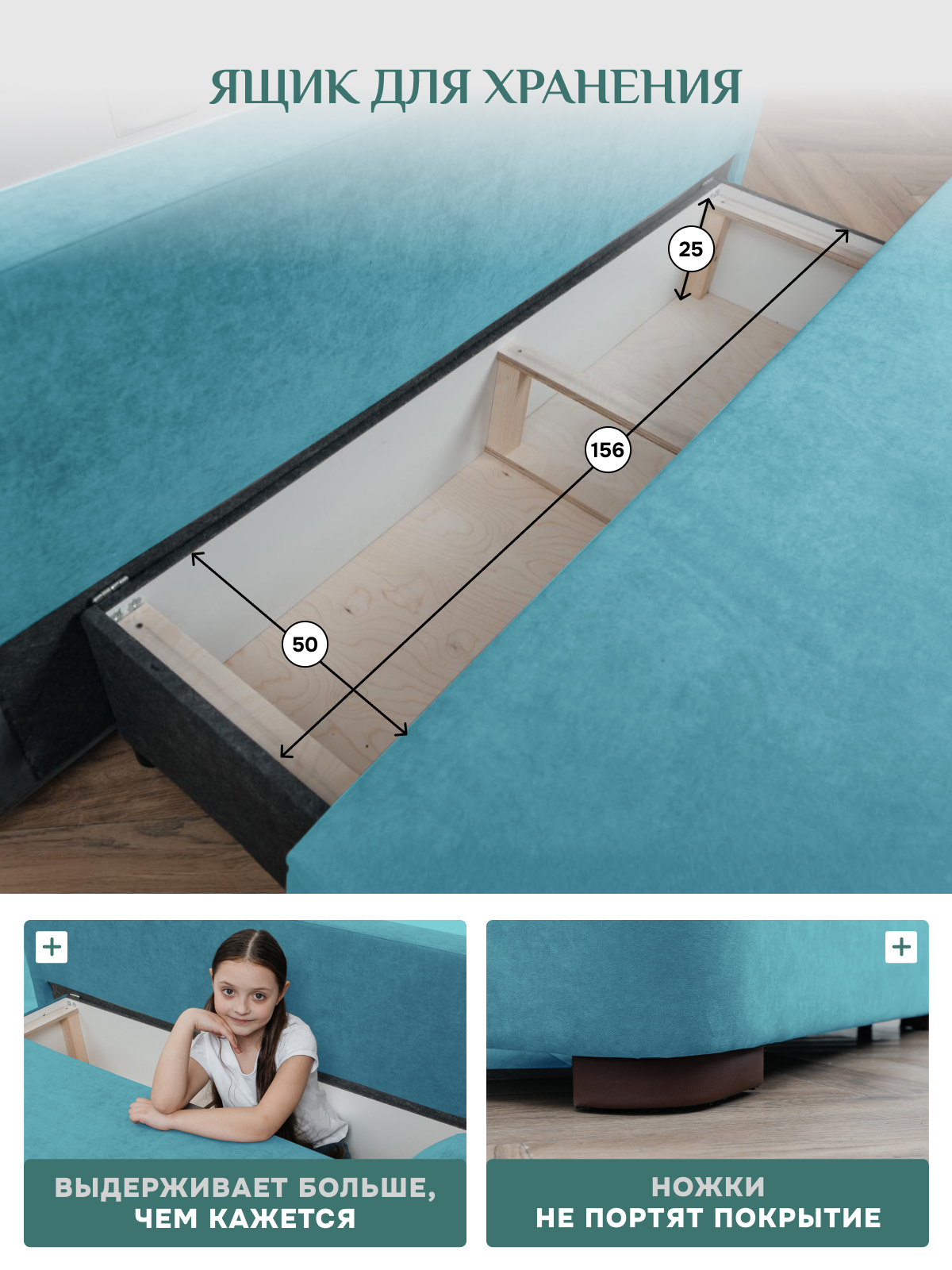 Вместительные потайные ящики в диване добавляют места для хранения.