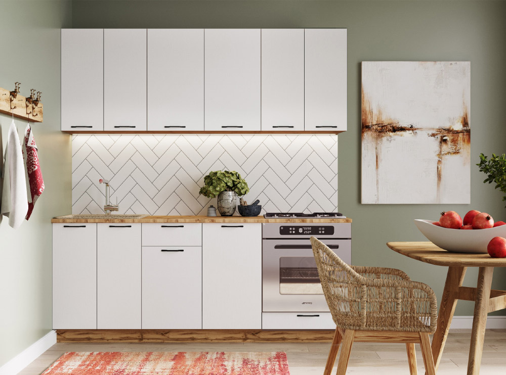 Стеновая панель, мойка, смеситель - не входят в стоимость комплекта.
