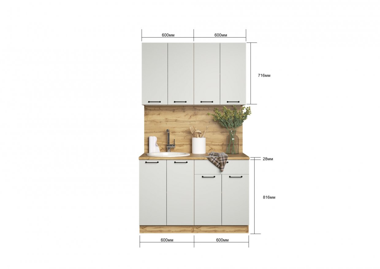 Артикул: A64491КУхонный гарнитур Валерия 1400 мм вотан/белый (Сурская)
