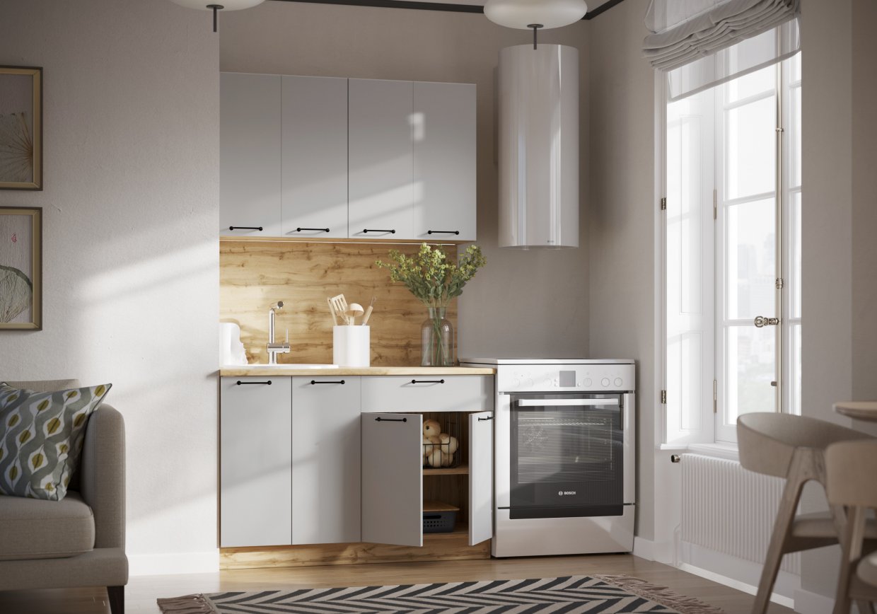 Артикул: A64490КУхонный гарнитур Валерия 1400 мм вотан/серый (Сурская)