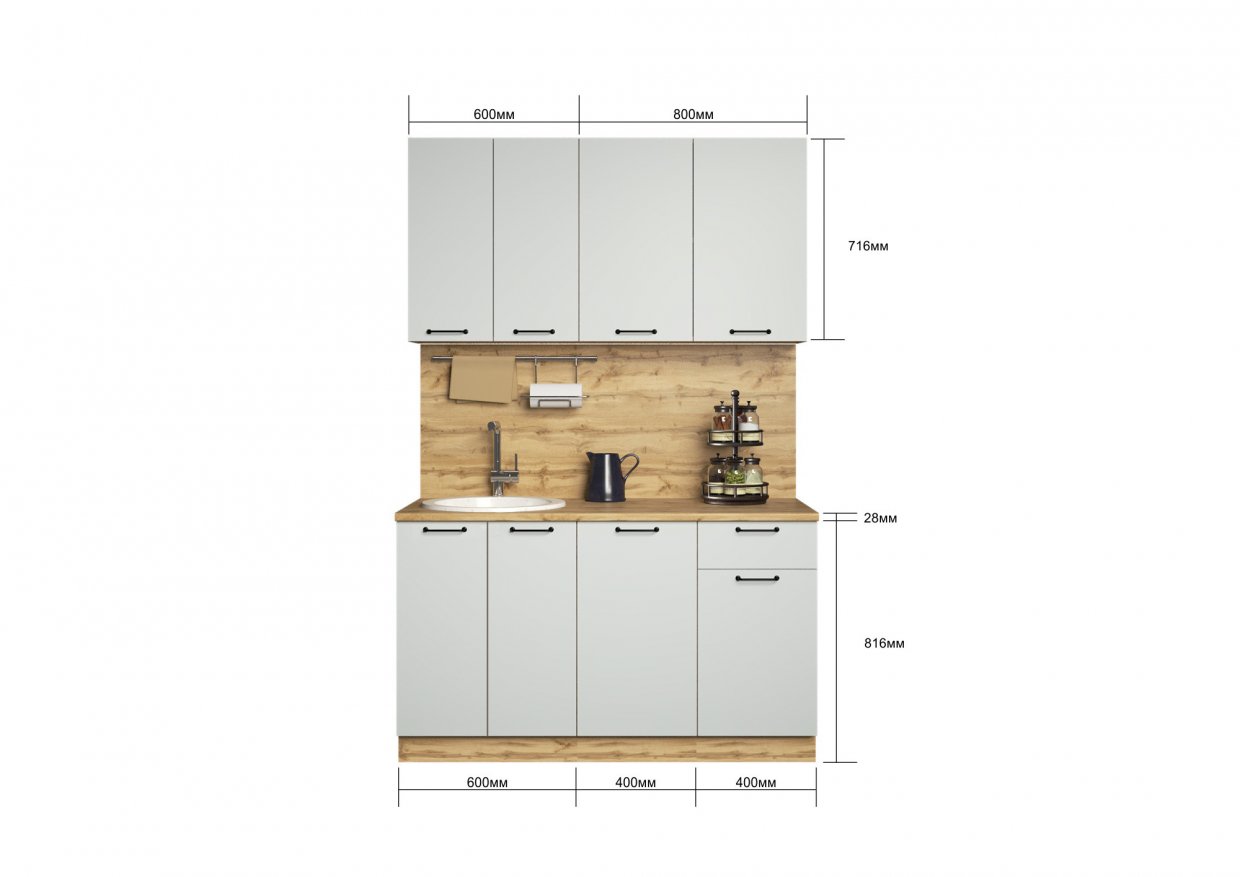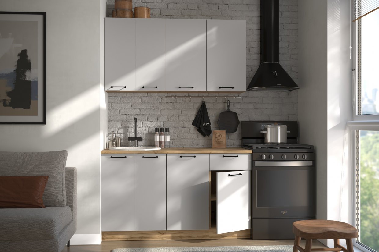 Артикул: A64480КУхонный гарнитур Валерия 1800 мм вотан/белый (Сурская)