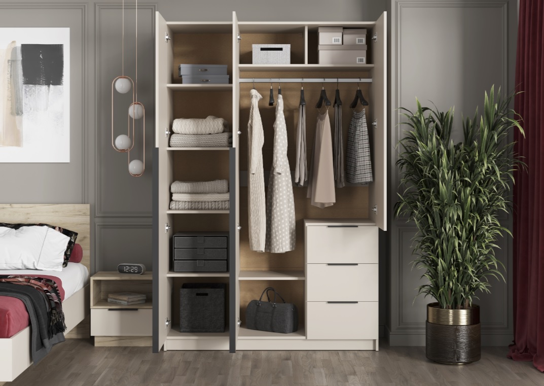 Ищете вместительный и современный шкаф для хранения одежды и вещей? ВЕНТУРО ШК-002 - это комбинированное решение, сочетающее в себе три створки и три выдвижных ящика, обеспечивая оптимальную организацию пространства.