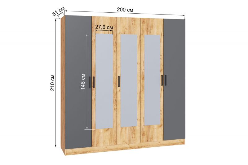 Артикул: A65647Шкаф 1600 мм Ларс крафт/графит (Микон)