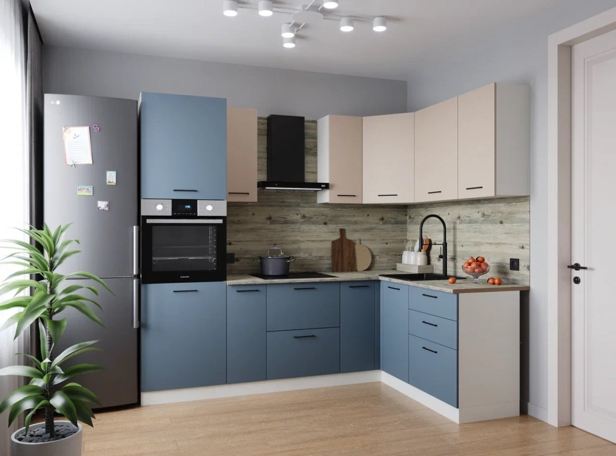 Артикул: A55920Угловой кухонный гарнитур Техно 1.3*1.4 м Вариант 3 (Миф)