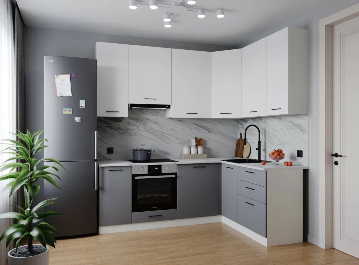 Артикул: A65156Угловой кухонный гарнитур Техно 1.7*1.3 м Вариант 3 (Миф)