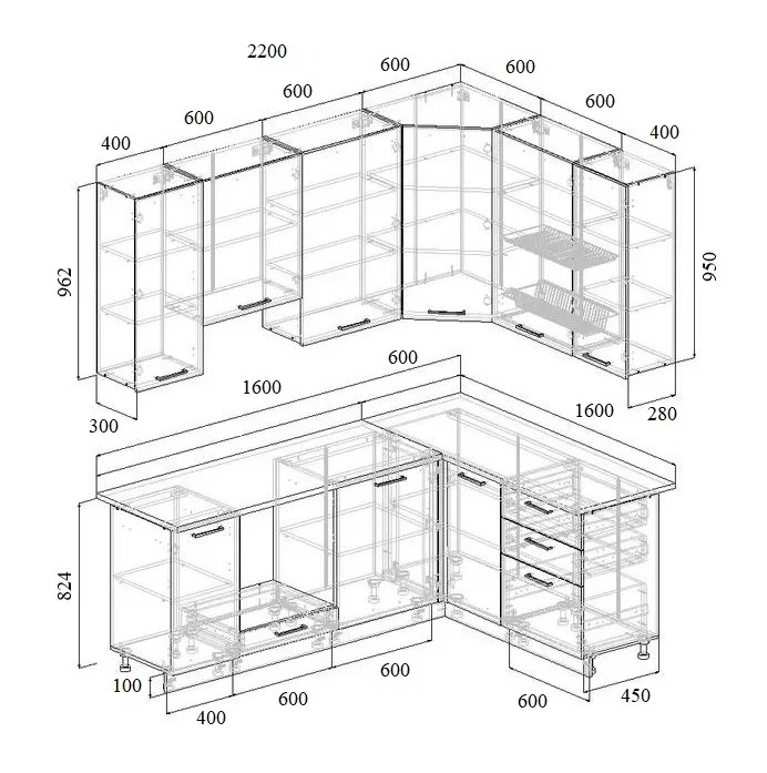 Артикул: A65150Угловой кухонный гарнитур Фьюжн 2200*1600 мм Sanvut